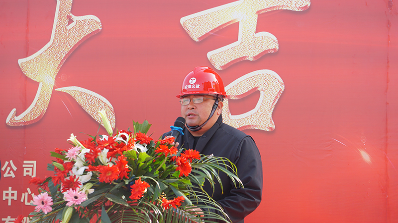 儀式上,鳳臺縣重點工程建設(shè)服務(wù)中心主任李曉輝在致辭中對安八二期項目13#樓封頂表示熱烈祝賀,向日夜奮戰(zhàn)在建設(shè)一線的全體建設(shè)者們致以崇高的敬意和真摯的問候,并希望在后續(xù)的建設(shè)中,全體人員一如既往強化安全管理,嚴把質(zhì)量關(guān),加快施工進度,確保工程如期完成。