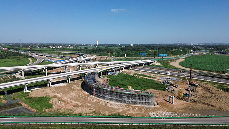 我標段承建的固蚌高速洪集樞紐二期工程,為落地式組合樞紐,向西距蚌埠北互通4.3公里,樞紐互通向南連接國道G329,設匝道收費站。項目建成后將實現(xiàn)與寧洛高速公路之間的交通轉換及國道G329交通直接上下高速公路的功能,便捷了蚌埠市從洪集出入口上下寧洛高速,緩解了該市東北部交通壓力。