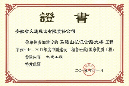 馬鞍山長江公路大橋工程榮獲“2016-2017年度第一批中國建設(shè)工程魯班獎”,“第15屆中國土木工程詹天佑獎”, 該項目由安徽省交通建設(shè)股份有限公司(以下簡稱安...