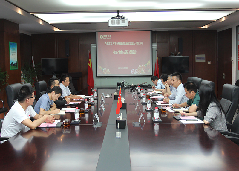 2020年9月25日下午,合肥工業(yè)大學(xué)汽車與交通工程學(xué)院黨委副書記、紀(jì)委書記張金偉等一行四人蒞臨安徽省交通建設(shè)股份有限公司,就校企戰(zhàn)略合作相關(guān)事宜進行洽談。公司總裁彭小毛、總工程師儲根法、副總裁陳明洋等出席洽談會,會議由交建股份副總裁吳小輝主持。
