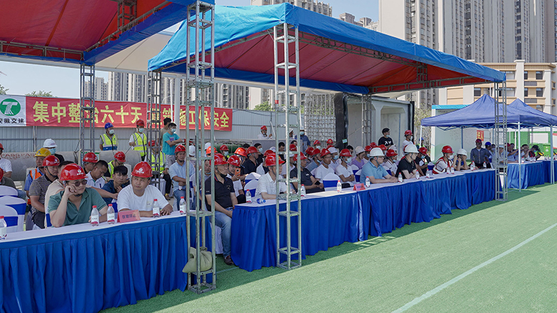 6月17日上午9時,安徽省交通建設(shè)股份有限公司大連路項目承辦的合肥市包河區(qū)2022年建筑施工安全(基坑坍塌)應(yīng)急演練在項目施工現(xiàn)場隆重舉行。包河區(qū)區(qū)委常委、常務(wù)副區(qū)長韓光輝等領(lǐng)導(dǎo)應(yīng)邀參加。